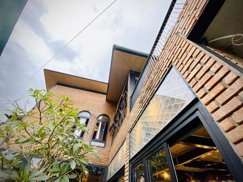 Những viên gạch nung xếp chồng tạo lên công trình thay vì được xây, phủ lên lớp vữa tạo ra tuyệt tác về công trình bền vững và rất truyền thống.