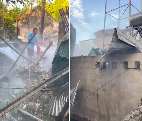 Trong lúc anh H. đang làm việc thì một tiếng nổ lớn lại tiếp tục phát ra trong đống đổ nát khiến anh H. và ông H.M.Đ. (em trai bà chủ nhà) văng xa vài mét, bị thương, được người dân đưa đi cấp cứu.