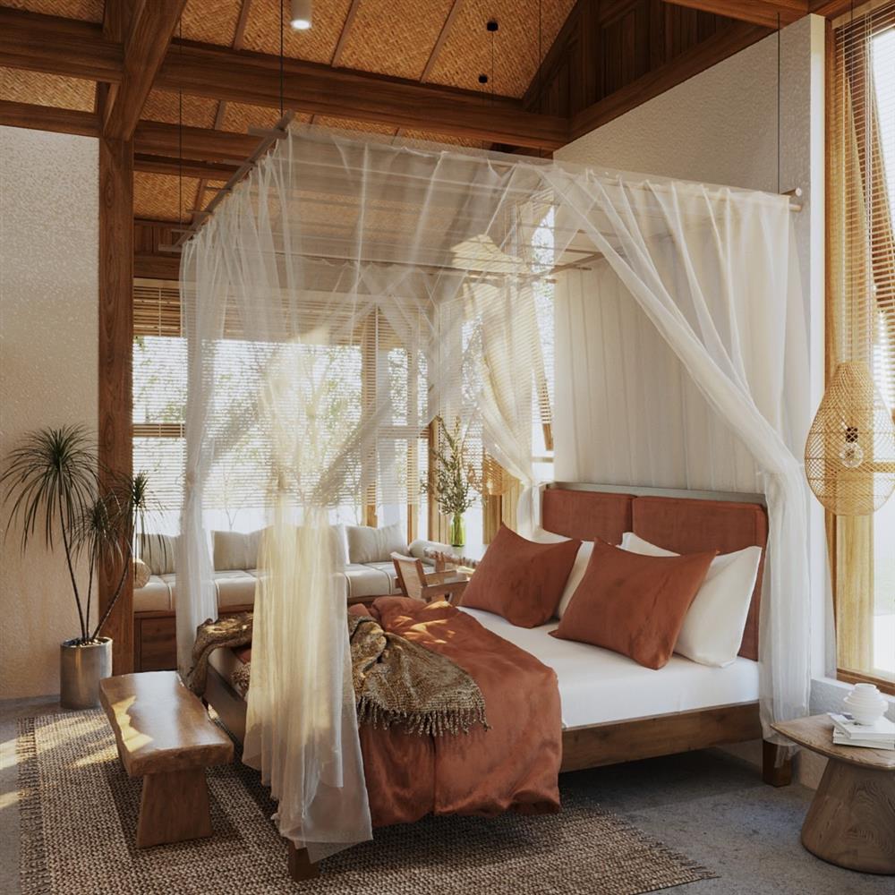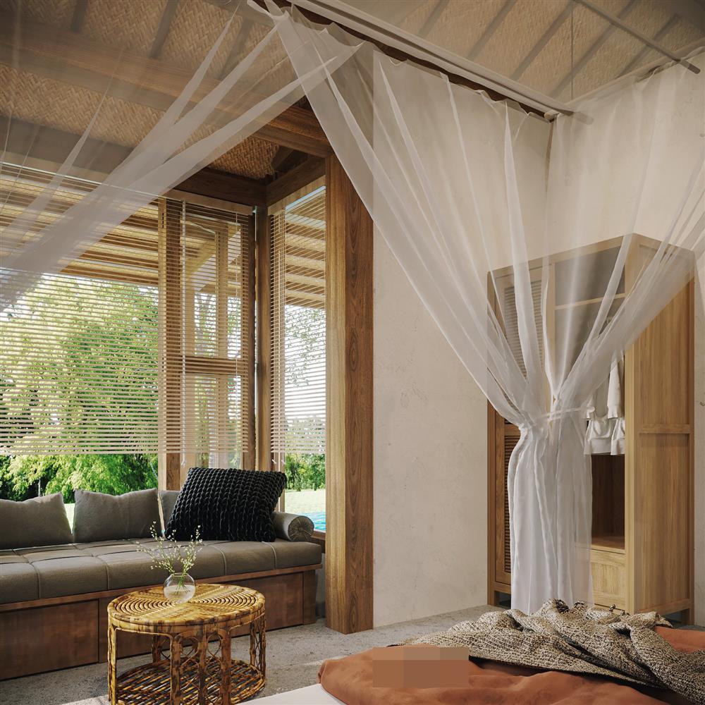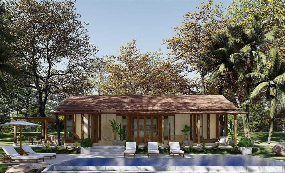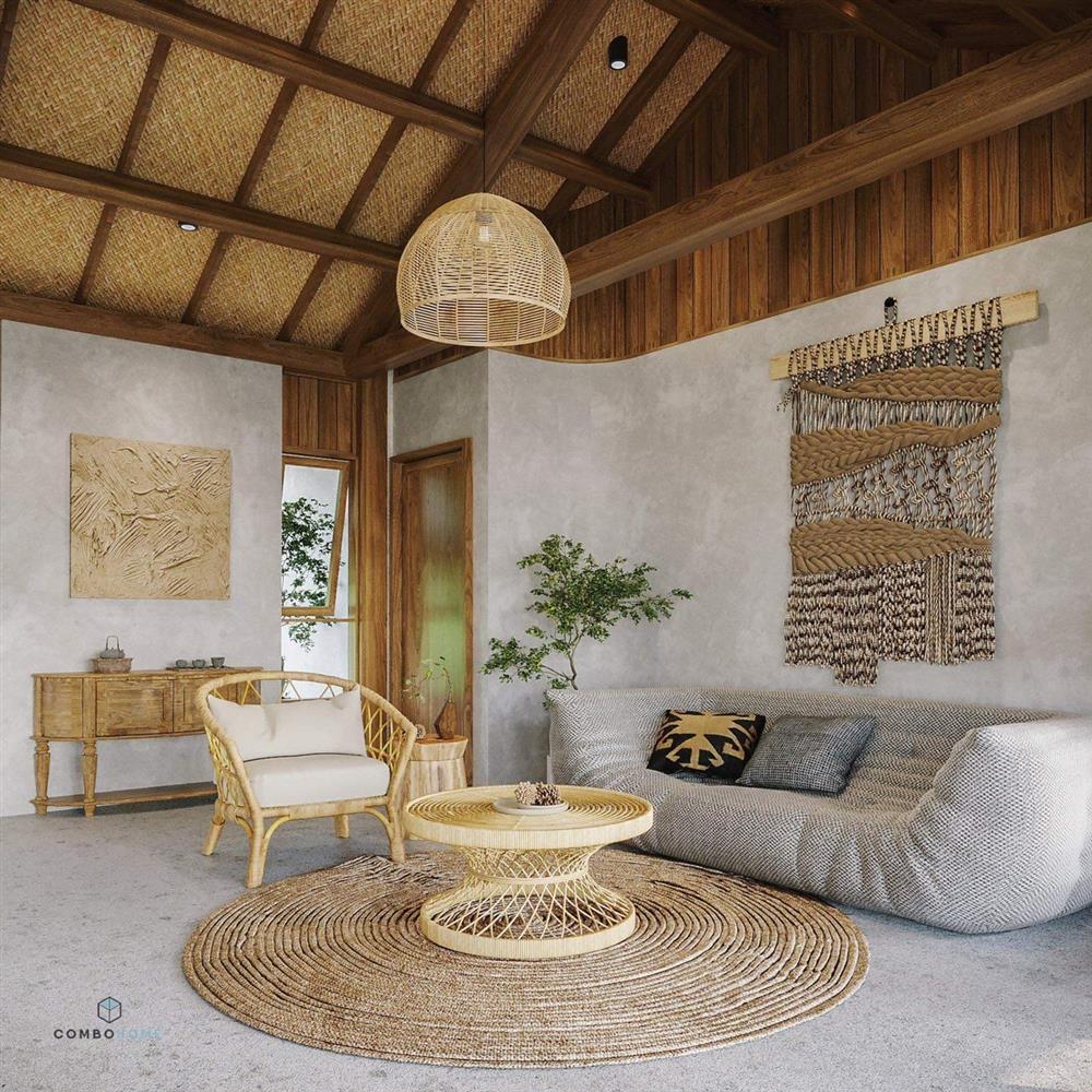Vật liệu sử dụng các loại gỗ thịt, bê-tông mài, trần cót ép, đồ mây tre đan, granito cho sàn… làm không gian đơn giản, mộc mạc nhưng tiện nghi đủ đầy cho mỗi căn nhà.