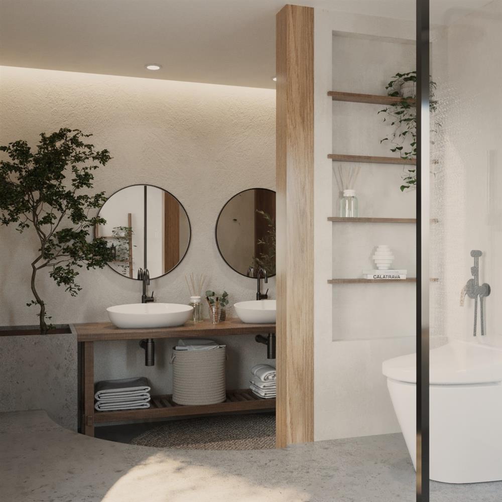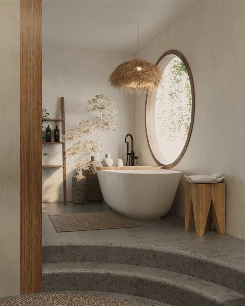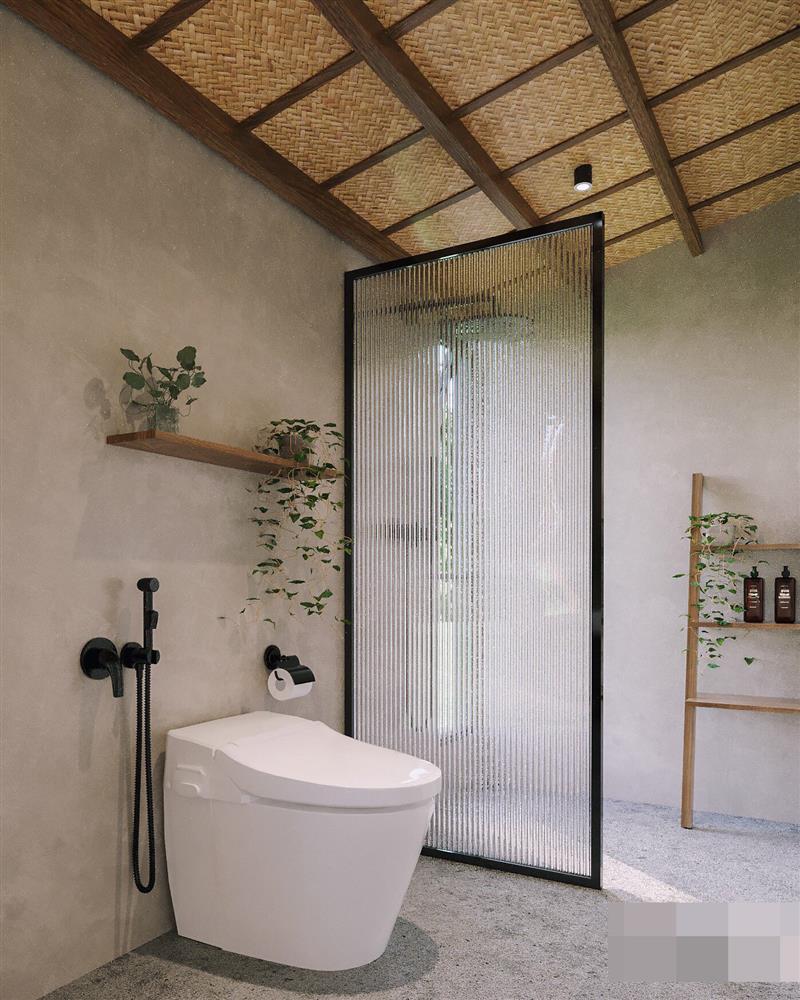 Phòng tắm đúng tính chất nghỉ dưỡng, hòa mình với thiên nhiên.
