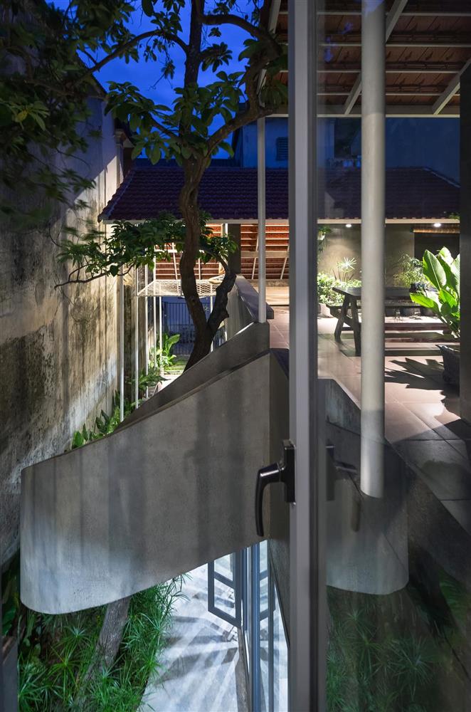 Khoảng không kết nối hai khu vực được biến thành nơi uống trà và trồng cây.