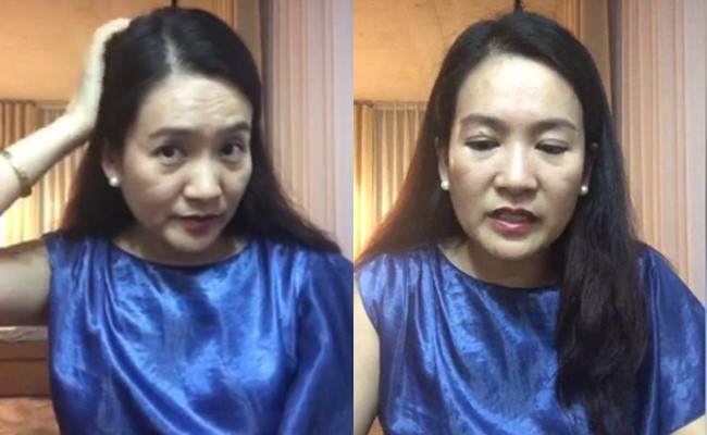 Không còn làn da căng bóng như lúc chụp hình, trong video quay trực tiếp, Anh Thơ rõ ràng không giấu được sự xuống sắc của mình.