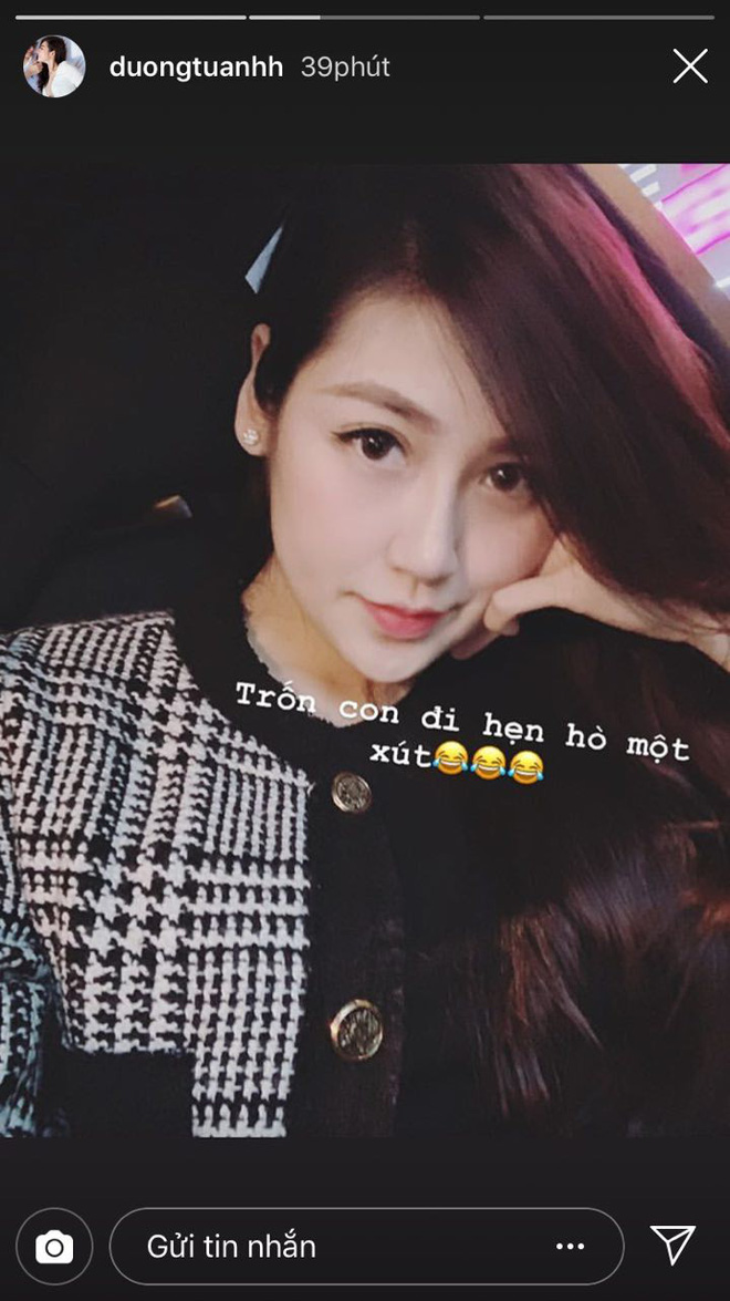 Dù không lên tiếng thừa nhận đã sinh con nhưng trước đó, Tú Anh đã đăng tải hình ảnh kèm dòng chú thích: "Trốn con đi hẹn hò một chút", như cách ngầm xác nhận điều này.