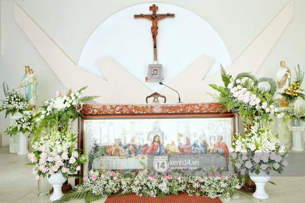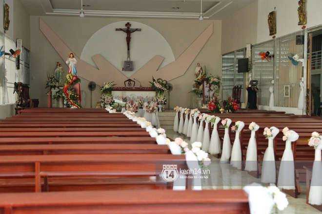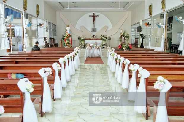 Nhà thờ nơi Bảo Thy và bạn trai đại gia tổ chức hôn lễ đã chuẩn bị xong, mọi thứ đều được bày trí rất đơn giản.