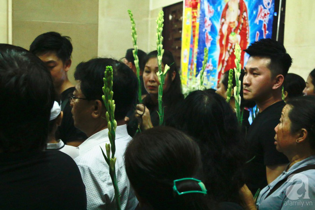 Bên trong, người nhà chuẩn bị hoa huệ trắng cầm trên tay để tiễn biệt cố nghệ sĩ
