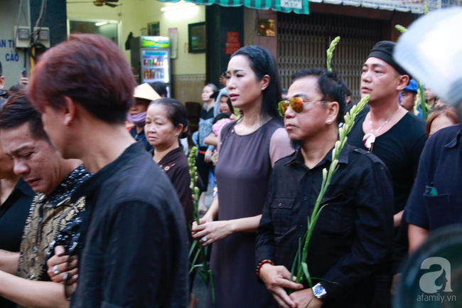 Bên cạnh gia đình, từ 5h sáng nay rất đông các nghệ sĩ, fan hâm mộ đã có mặt tại chùa Ấn Quang để làm lễ di quan cho nghệ sĩ Anh Vũ.