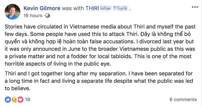 Dẫy vậy, cư dân mạng vẫn chưa thực sự tin lời nói của Kevin Gilmore bởi ngày 28/12/2017, Hồng Nhung vẫn đăng tải hình ảnh gia đình hạnh phúc trên trang cá nhân.