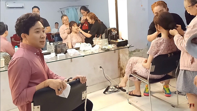 Trong lúc cả hai cùng ngồi trang điểm để chuẩn bị vào quay, Hari Won liên tục càu nhàu về chuyện bị lây bệnh hô hấp vì thói quen dùng nước hoa của Trấn Thành: