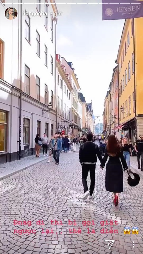 Cặp tình nhân nắm tay nhau xuống phố dạo chơi khám phá thủ đô của Thụy Điển. Nói về khoảnh khắc này, Hà Hồ hóm hỉnh bảo: "Đang đi thì gọi giật lại... thế là diễn".