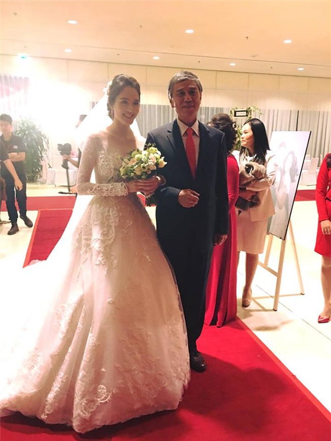 Á hậu Việt Nam 2012 khoác tay bố bước vào hôn trường.