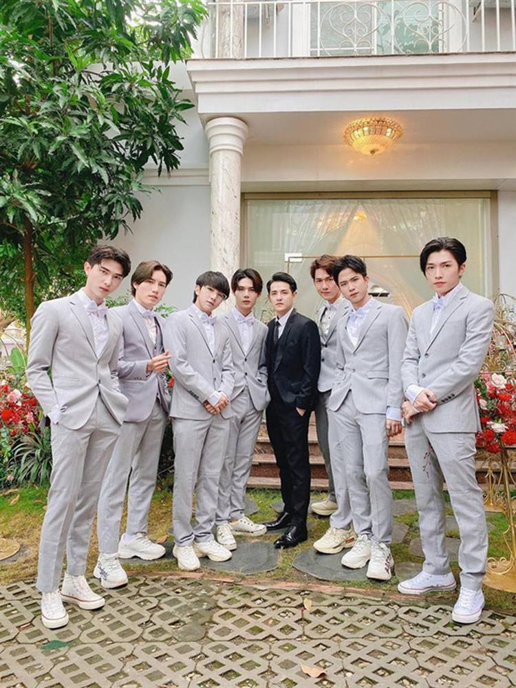Không kém cạnh so với nhà gái là là phù rể cực điển trai và hút mắt với Uni5, Song Luân, Anh Tú (The Voice). Xuất hiện với trang phục là vest xám và giày thể thao trắng, học trò của Đông Nhi và Ông Cao Thắng trông như là những hoàng tử.