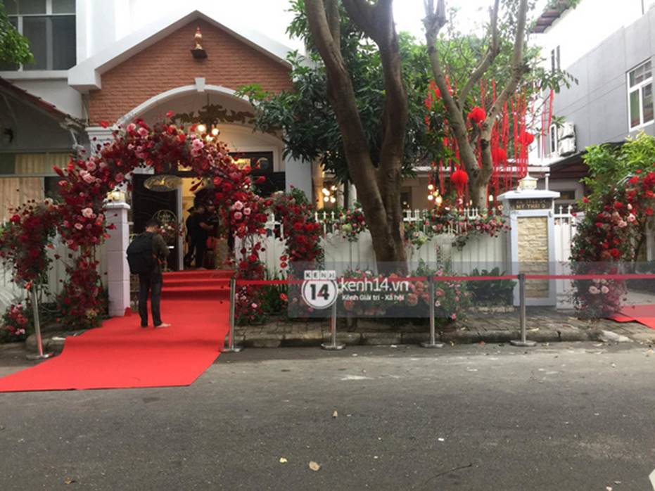 Từ tối ngày 7/11, cả hai biệt thự nhà cô dâu, chú rể đã được trang hoàng cực kỳ lộng lẫy với hoa tươi. Được biết, dinh thự nơi tổ chức lễ thành hôn của nhà trai và nhà gái của cả hai đều nằm trên mảnh đất "dát vàng".