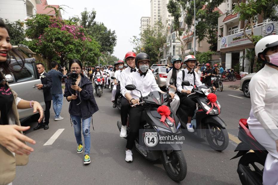 Truyền thông vây kín, fan đồng loạt mặc áo dài trắng chạy xe máy không khác gì "bão"