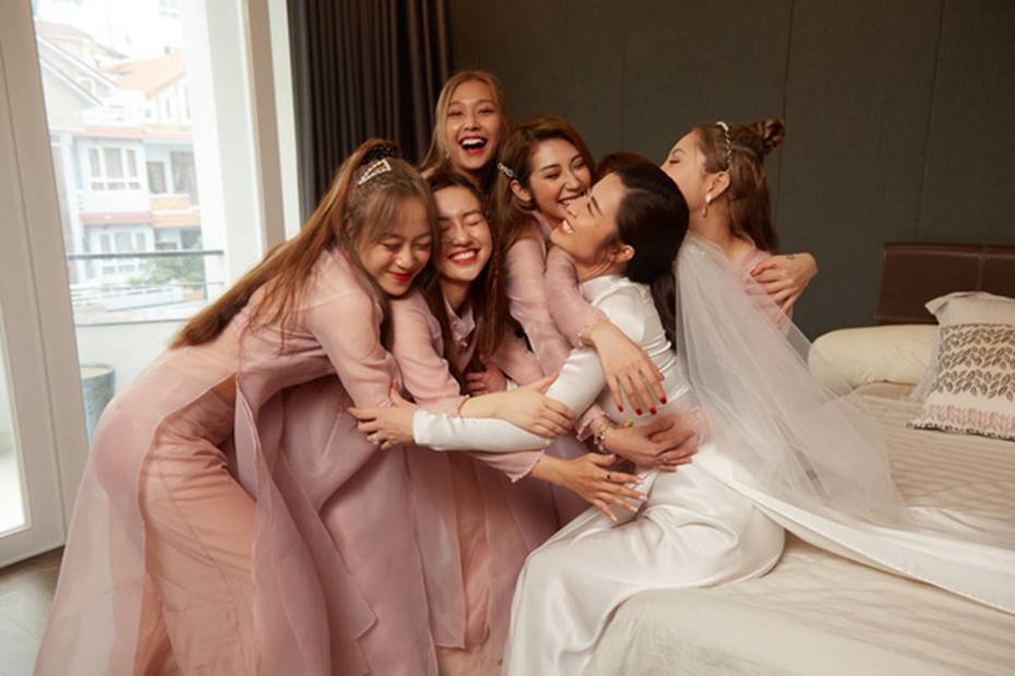 Trong sáng ngày 8/11, Đông Nhi và Ông Cao Thắng đã tổ chức lễ rước dâu với quy mô hoành tráng. Từ sáng sớm, dàn phù dâu phía nhà gái đã xuất hiện trang điểm cực kỳ xinh đẹp với trang phục là áo dài hông cùng chờ nhà trai đến.