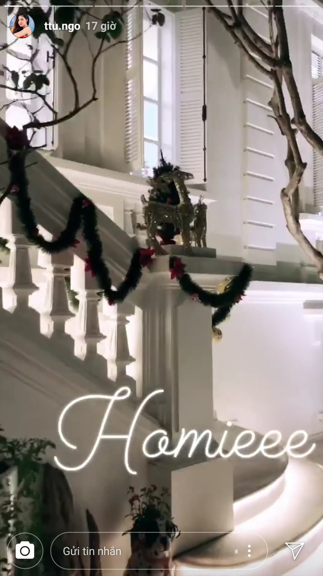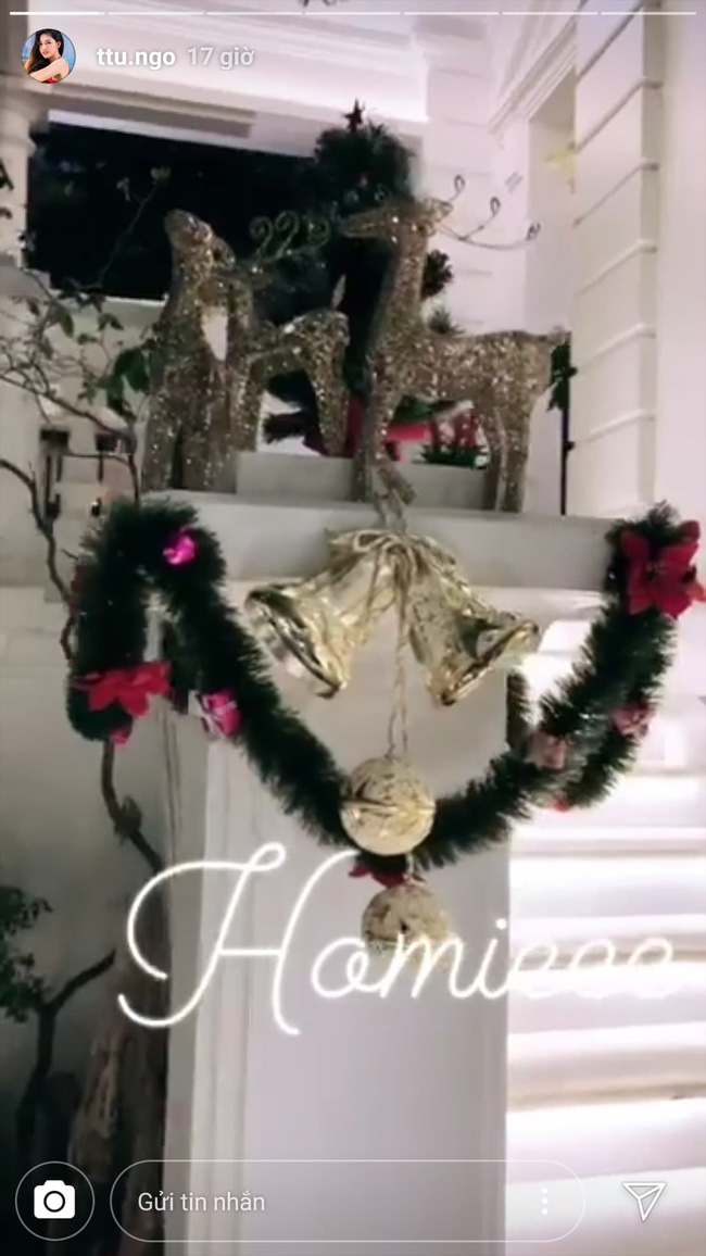 Thanh Tú vừa đăng tải lên Instagram loạt hình ảnh đón giáng sinh trong căn biệt thự rộng lớn của chồng đại gia. Á hậu tự hào khoe "homie" được trang hoàng vô cùng lộng lẫy với những đồ trang trí Noel đắt đỏ, phủ lấp lánh khắp bên trong bên ngoài biệt thự trông không khác gì ở phương Tây.