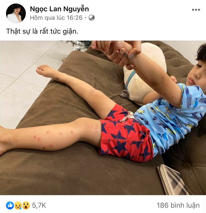 Hình ảnh con trai bị muỗi cắn đầy chân cùng tâm trạng khá tức giận của Ngọc Lan thu hút sự chú ý.