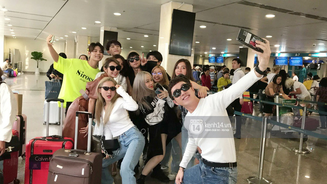Dàn sao hào hứng selfie trong sân bay trước giờ khởi hành