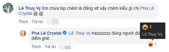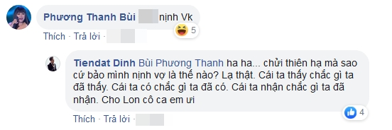 Về phía mình, bà xã Đinh Tiến Đạt để lại bình luận khó hiểu dưới chia sẻ của ông xã. Thay vì trả lời câu hỏi, Lê Thụy Vy lại tag tên đồng nghiệp của chồng và hỏi: "Em chưa kịp hỏi là đăng status vậy chém kiểu gì chị Pha Lê ơi?". Đáp lại, Pha Lê bày tỏ sự ngỡ ngàng kèm lời nhắn lấp lửng tới bà xã họ Đinh: "Đúng người đúng thời điểm ghê...".