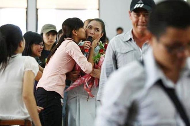 Một lần làm giám khảo, Mỹ Tâm giật mình khi một em nhỏ lao từ phía ghế khán giả lên hôn vào má cô.