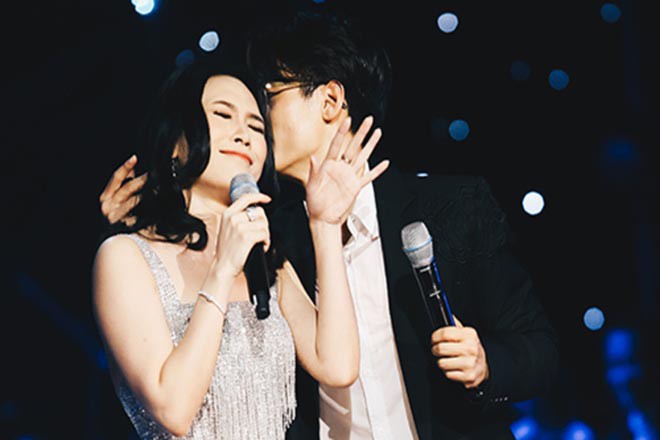 Ở một chương trình biểu diễn, việc Hà Anh Tuấn bất ngờ hôn lên tóc khiến Mỹ Tâm đầy ngại ngùng, bối rối.