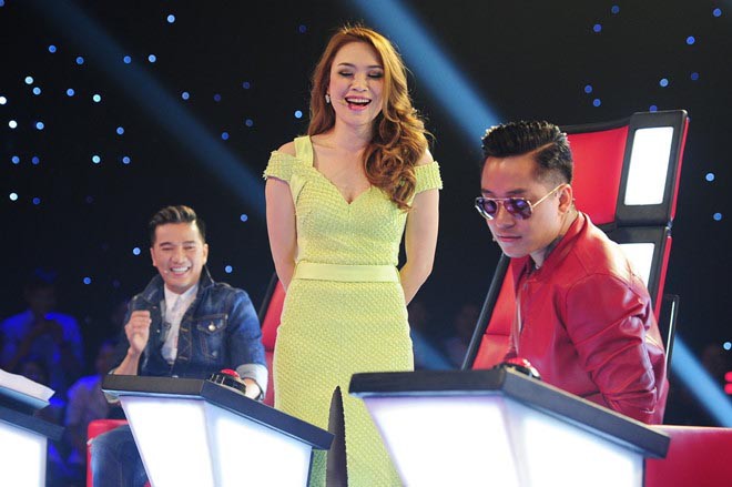 Tại "Giọng hát Việt 2015", Tuấn Hưng vô tư cưỡng hôn Mỹ Tâm ngay trên "ghế nóng" để thể hiện sự quý mến đồng nghiệp thân thiết.
