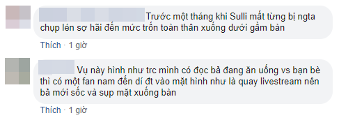 Theo những gì cộng đồng mạng đang chia sẻ lại về sự việc, Sulli lúc đó đã sợ hãi đến mức phải trốn xuống gầm bàn.