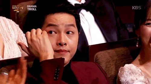 Khi ấy, Song Joong Ki ngồi cạnh Song Hye Kyo và bật khóc khi đàn em Park Bo Gum giành được giải thưởng Nam diễn viên chính xuất sắc nhất. Thậm chí khi ấy, Song Hye Kyo còn vỗ lưng trêu đùa Song Joong Ki khiến nhiều fan hâm mộ bây giờ nhìn lại vô cùng tiếc nuối.