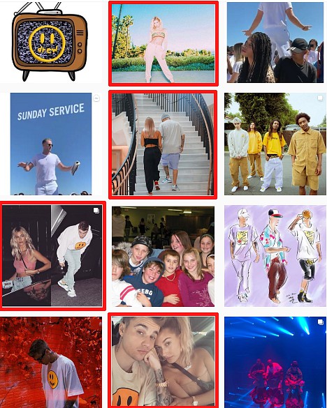 Trong cả hai cuộc tình, Justin Bieber và hai ngôi sao nữ đều thể hiện tình cảm với nhau trên mạng xã hội, nhất là Instagram. Trong suốt 9 năm yêu đương với Selena Gomez, khán giả vẫn thấy được Justin thể hiện tình cảm với nữ ca sĩ và cô cũng làm điều tương tự. Tuy nhiên, tần suất xuất hiện của những thông điệp tình yêu này lại khá thưa thớt.