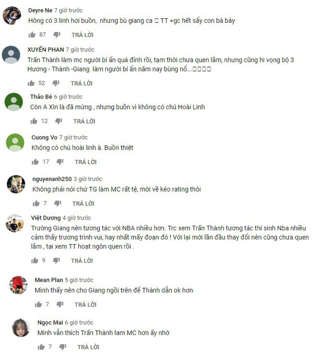 Nhiều khán giả tỏ ý muốn Trấn Thành về làm MC như cũ, còn Trường Giang thay thế Hoài Linh, vì đã quen với sự hoạt ngôn của Trấn Thành.
