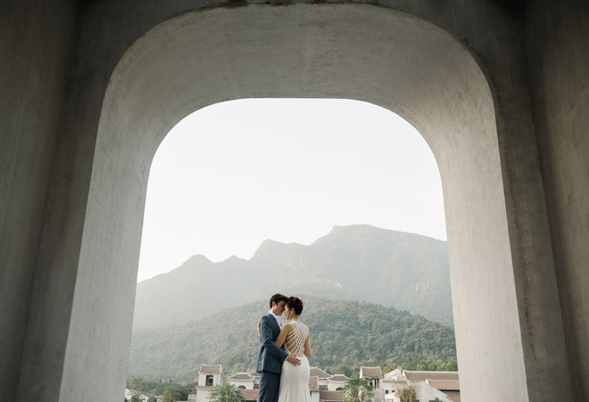 Trong khung cảnh thiên nhiên trong lành cùng những tòa tháp cổ kính mang lại cho người xem cảm giác yên bình như chính tình yêu của vợ chồng Hoàng Oanh.
