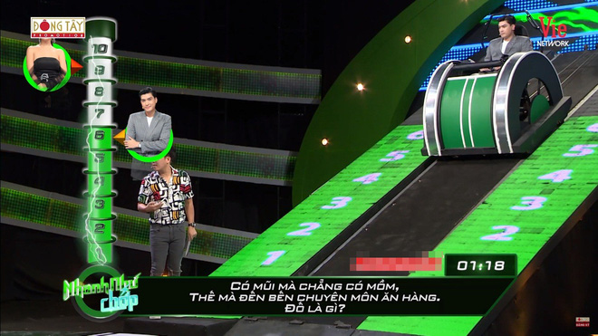 Trường Giang vẫn nghiêm khắc: "Ở đây có MC nhắc câu hỏi rồi. Muốn nhắc câu hỏi thì lên làm MC". Anh rất ít khi tỏ thái độ như vậy trên truyền hình.