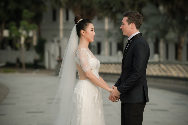 Trong một số bức ảnh cận cảnh cô dâu, có thể thấy phần eo của Hoàng Oanh khá lớn, vùng bụng cũng có chút nhô ra dù lớp váy xòe đã che chắn khá khéo léo. Nhiều người cho rằng, Á hậu xinh đẹp cùng chồng Tây đã có tin vui nhưng chưa công bố.