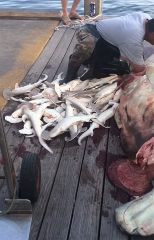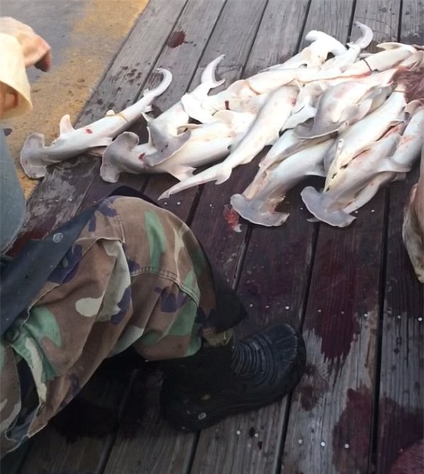 Sự việc mới xảy ra vào đầu tháng 6 tại vùng biển Harborwalk, Destin khi 1 con cá mập đầu búa nặng gần 380kg bị mắc vào lưới đánh cá của ngư dân trên biển. Các nhân chứng cho biết trên cơ thể cá mập mẹ có vẻ như xuất hiện nhiều vết đạn hoặc vết đâm xiên, trong khi đó, vây của nó đã bị cắt bỏ.
