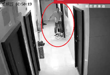 Gã hàng xóm bỏ chạy khỏi nhà của 2 cô gái bằng cửa chính bị camera ghi lại. Ảnh: Baijia Hao.