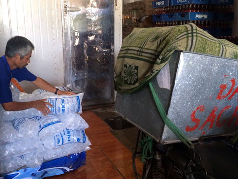 Mặc dù cửa hiệu đã có hai shipper “ruột” chuyên đảm trách việc giao hàng, nhưng từ khi bước vào đợt nắng kinh hoàng họ làm không xuể bởi số đơn tăng đột biến, gấp 3-4 lần.