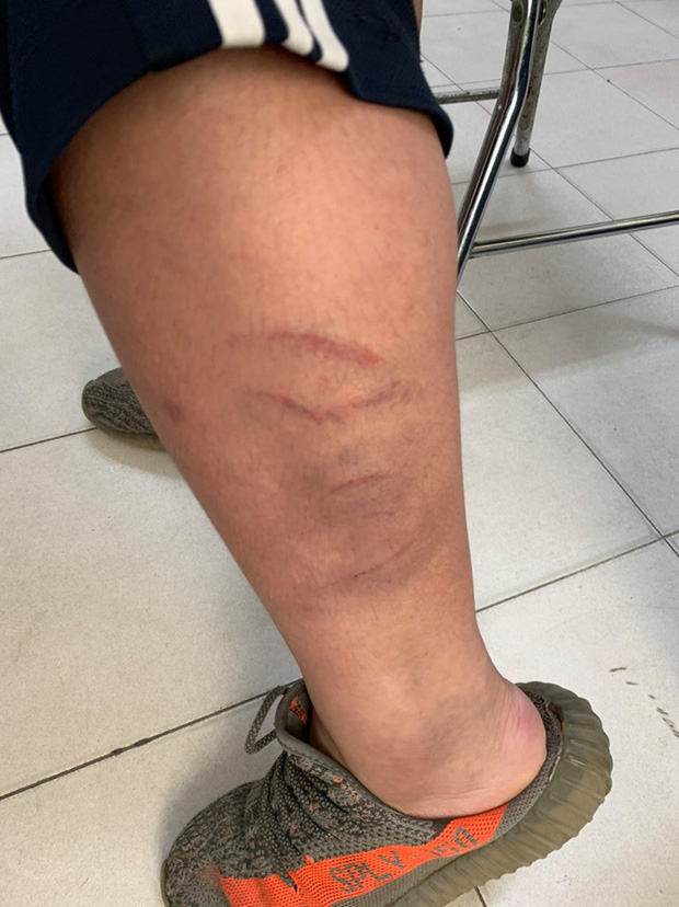 Chân trái cháu K. cũng có nhiều vết bầm tím.