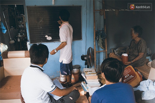 Trong căn nhà nhỏ chưa đến 50 m2 nằm sâu trong hẻm đường Xuân Thới Sơn (huyện Hóc Môn, TP. HCM), người cha già cặm cụi viết từng công thức toán học lên bảng đen, ngồi bên dưới, hai cậu con trai lẩm bẩm ghi nhớ rồi đọc lại đề toán, áp dụng công thức mà bố "gợi ý" và bắt đầu giải.