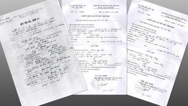 Biên bản bắt tạm giam bà Nga và hai quyết định hủy bỏ việc tạm giam với hai con trai của bà Nga.