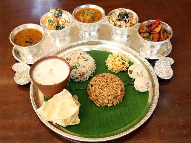 Một bữa Thali phải có đủ 6 vị: ngọt, mặn, đắng, chua, cay và chát trên mỗi đĩa. Trái cây thường được ăn vào cuối bữa.