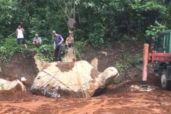 Trưa ngày 11/6, trên mạng xã hội facebook lan truyền hình ảnh một tảng đá có hình thù giống con rùa. Mặc dù hòn đá chưa được đưa lên khỏi mặt đất nhưng nhìn qua, bề mặt của hòn đá có nhiều chi tiết giống con rùa như phần bụng, mai phẳng và đầu.