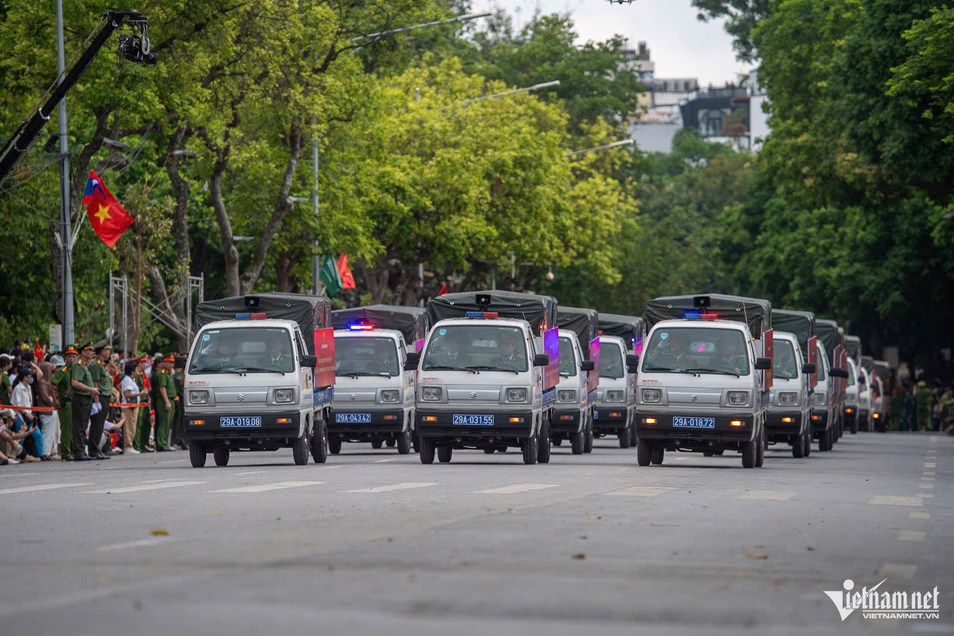 Trong ảnh khối chiến sĩ cảnh sát cơ động và xe bọc thép. Màn diễu hành khẳng định quyết tâm xây dựng lực lượng cách mạng, chính quy, tinh nhuệ, từng bước hiện đại.