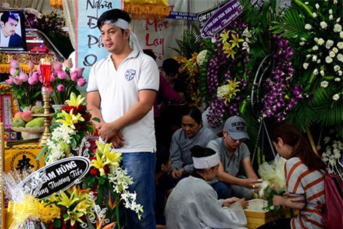 Em trai Duy Nhân thay bố mẹ chu toàn đám tang của anh. Nhiều ngày qua, anh lặng lẽ đứng bên quan tài anh hoặc ngồi thẫn thờ một góc. |