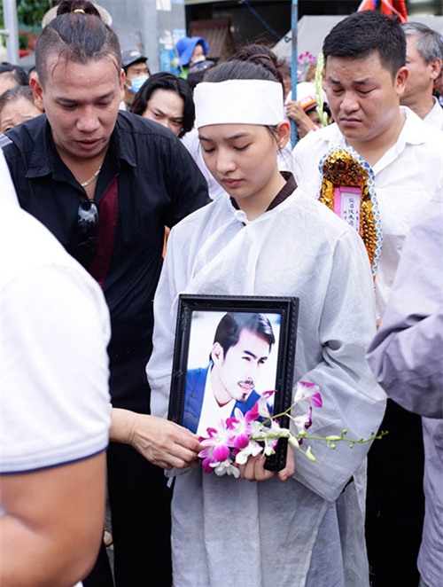 Người vợ trẻ lặng lẽ mang di ảnh chồng. Cô từng từ chối cơ hội du học nước ngoài để tổ chức đám cưới cùng Duy Nhân. Tuy nhiên, hạnh phúc chưa tày gang, họ sớm chia lìa. |