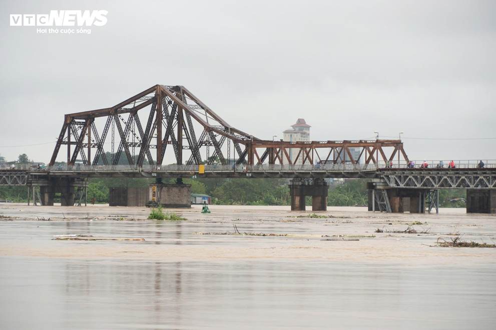 Ông Tư, 83 tuổi, người dân trong khu vực Chương Dương Độ (quận Hoàn Kiếm) cho biết những năm trước, mực nước sông Hồng cao nhất cũng chỉ 6 m, ngấp nghé 7 m nhưng mức nước hiện cao tới 9 m, "chỉ thêm khoảng 4 m nữa là chạm mép cầu Long Biên".