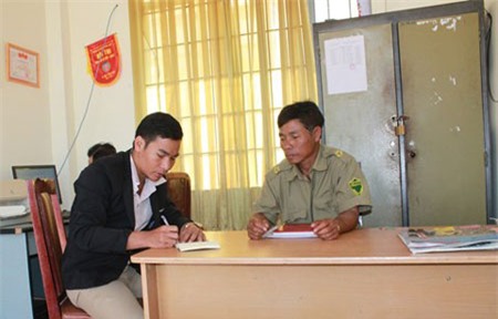 Ông K’ Brọi (Phó công an xã Bảo Thuận) cung cấp thông tin cho Pv |