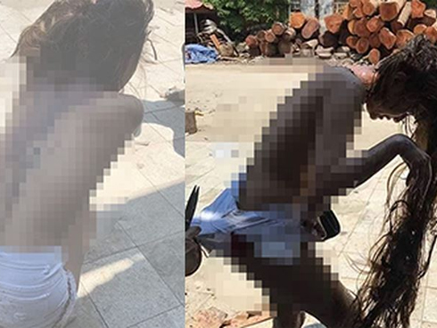 Còn bà T. (người chứng kiến sự việc) cho hay, khoảng 13h20' ngày 12/7, khi bà từ trong nhà đi ra ngoài thì phát hiện một cô gái đang ngã dưới đất, trên người không có quần áo, lấm lem đất và nồng nặc mùi dầu luyn trộn mắm tôm.
