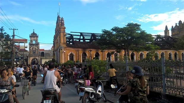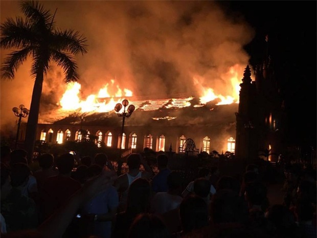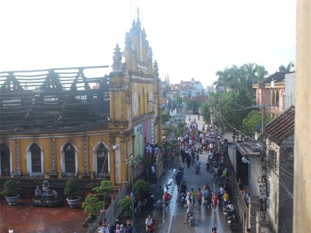 Người Dân Nam Định xót xa nhìn ngôi nhà thờ cổ 130 tuổi bị cháy rụi trong đêm. Nguồn: Facebook |