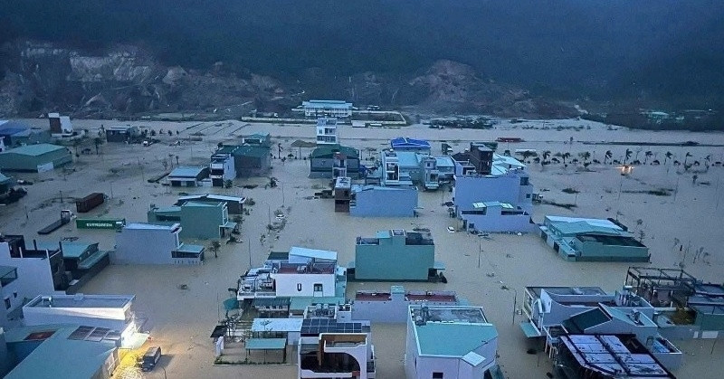 Theo ghi nhận của VietNamNet, tại vòng xoay Ngọc Hội, phường Tây Nha Trang, nhiều ôtô đỗ trên đường bị hư hỏng nặng. Tàu thuyền, cano của lực lượng cứu hộ nằm la liệt trên mặt đường.