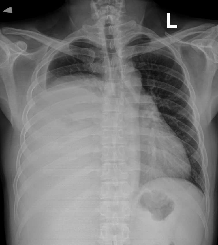 Qua thăm khám và chụp cắt lớp vi tính lồng ngực, các bác sĩ phát hiện khối u trung thất khổng lồ nằm lệch trong khoang màng phổi phải, chèn ép gây xẹp gần như toàn bộ phổi phải, đẩy lệch cơ hoành. Kết quả sinh thiết xác định đây là u bao sợi thần kinh Schwannoma - Một loại u lành tính hiếm gặp xuất phát từ bao thần kinh nhưng kích thước "khủng" hiếm thấy. Khối u xâm chiếm khoang ngực, gây xẹp gần như toàn bộ phổi phải