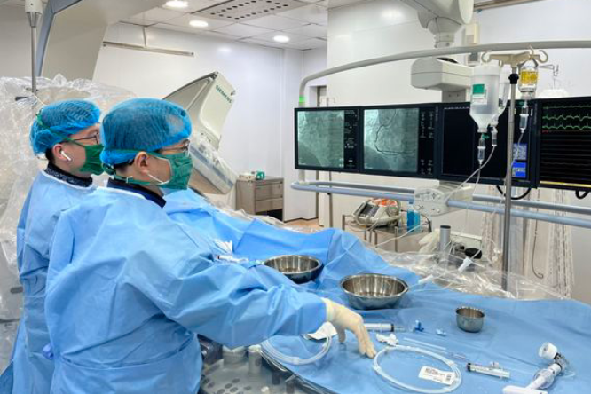 Được sự đồng ý của Ban giám đốc, kíp can thiệp đã giải thích cho người nhà qua điện thoại (gia đình bệnh nhân đồng ý tiến hành thủ thuật can thiệp mạch vành cho bệnh nhân) và bước đầu bỏ qua công tác ký quỹ cho bệnh nhân và ngay lập tức tiến hành thủ thuật cho bệnh nhân.